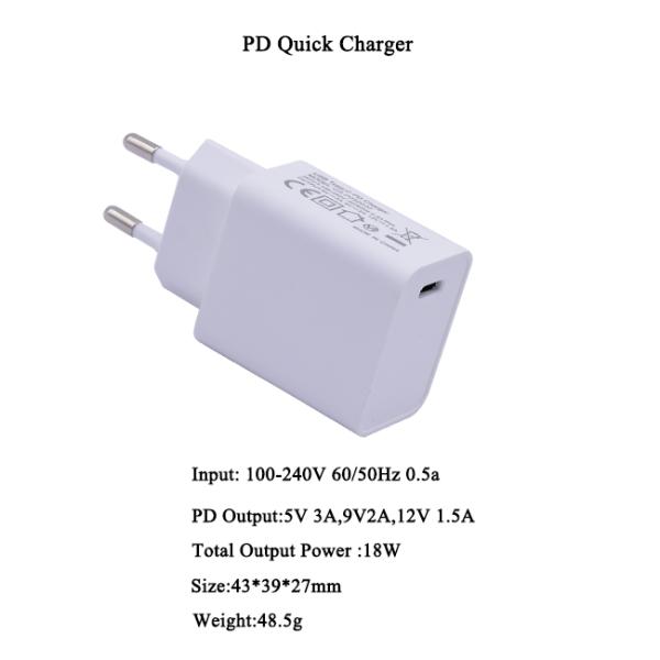 | Name: | Certificated 5V 3A 9V 2A 12V 1.5A Quick Charge PD Charger Type C Adapter 18W |