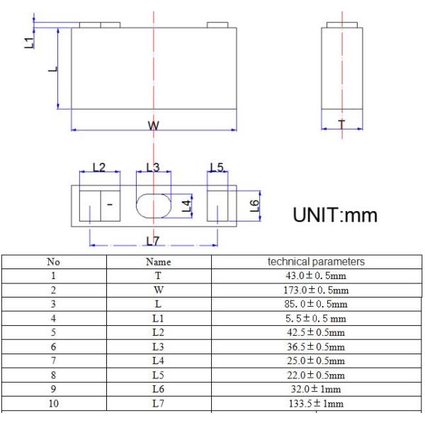 Width:173mm(When measuring, the pressure of the measuring instrument on the battery is 300gf, and the temperature is 25±2℃)