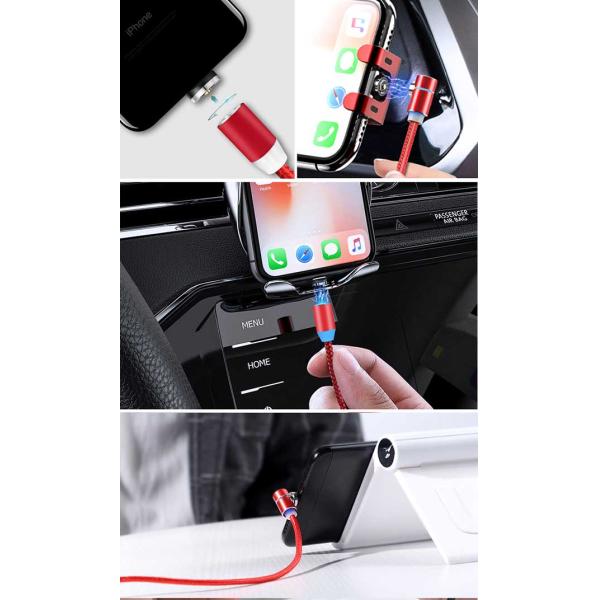 Magnetic 3 in 1 Nylon Braided USB2.0 Charging Cable, with LED