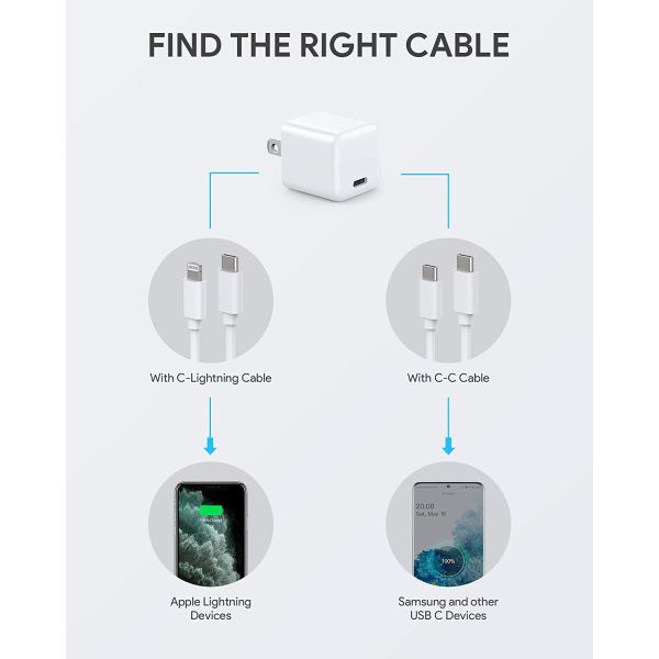 IPhone 12 PD 3.0 Type C Fast Charger Durable Compact 20 Watt USB C Power Adapter