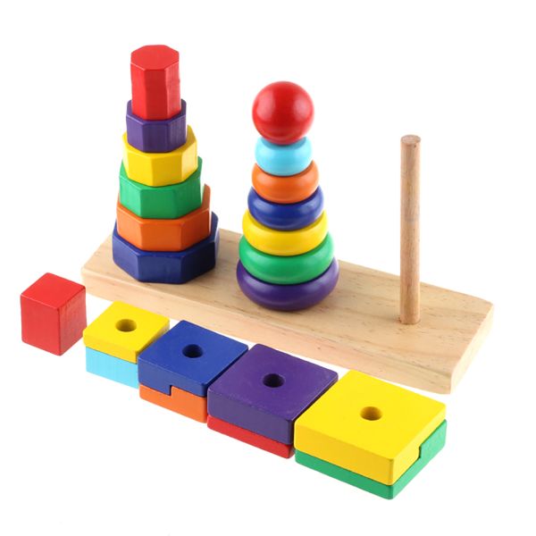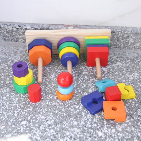 Wooden Geometric Shape Stacker Sorting Board Toddler Childhood