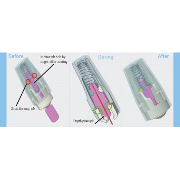 Soft activation system and ultra-thin needles provide enhanced comfort;