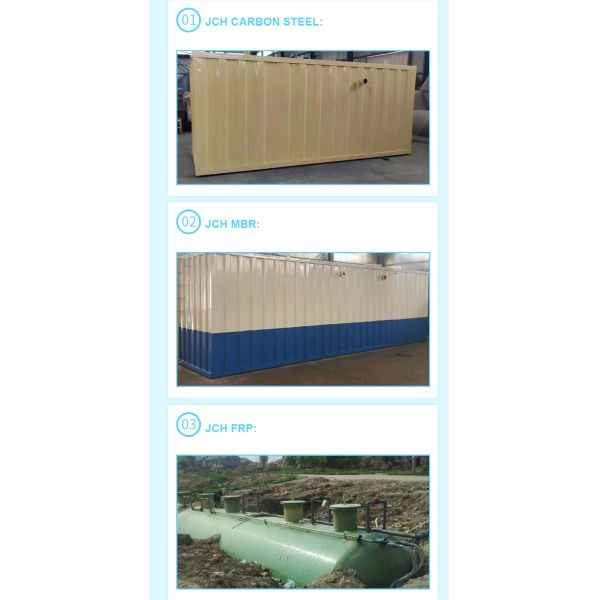 FRP integrated sewage treatment equipment adopts the world's advanced biological treatment process, which integrates the removal of BOD5, COD and NH3-N. It is widely used in domestic sewage of high-end hotels, villas and residential quarters and similar Industrial organic sewage treatment replaces septic tanks with a low removal rate, and the effluent after treatment cannot meet the national comprehensive discharge standard. Field application shows that JCT type FRP series integrated sewage treatment equipment is a kind of equipment with very ideal treatment effect, strong durability and convenient management.