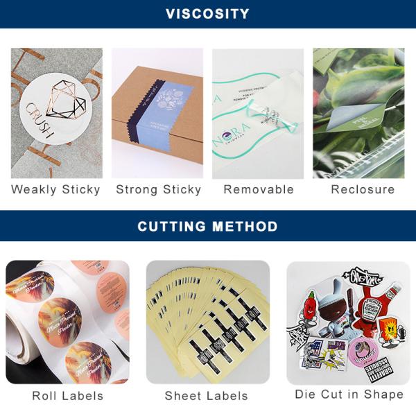 The main paper sticker materials are Coated paper, writing paper, kraft paper, Gold / Silver foil paper, Art paper,