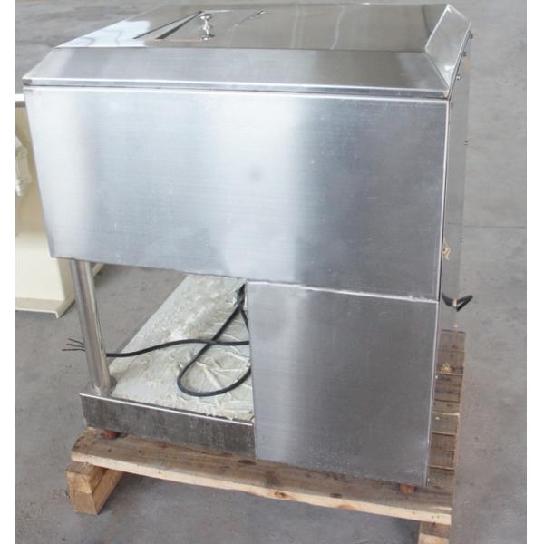 The body is made of stainless steel, which can cut fresh or frozen ribs into strips or