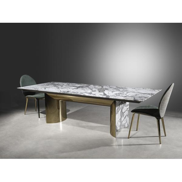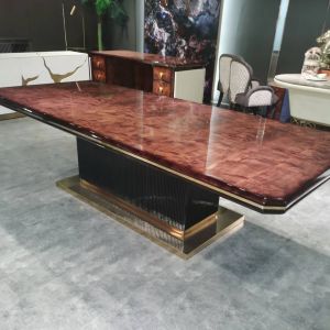 Luxurianism is one of the most popular styles at present. It is not only a new and fashionable lifestyle, but also skillfully integrated into all aspects of life.The stainless steel, marble and luxury style are skillfully combined to show on this luxury dining table.