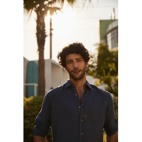 Button-up shirt made of 100% linen featuring spread collar and
