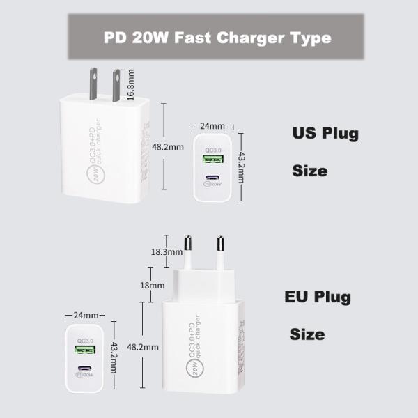 PD USB 3.0 Quick Charger Travel Charger 20W US/EU/UK/AU Plug