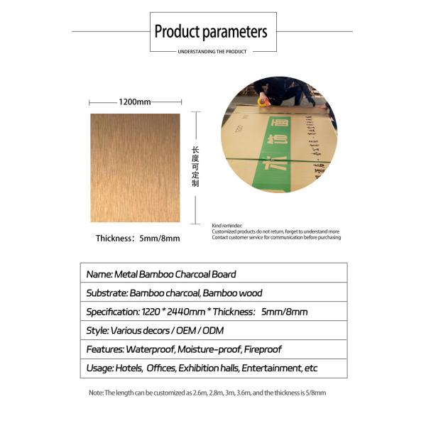 The appeal of faux metal wood veneer wall panels lies in the seamless integration of two different materials, PVC metal film and wood. Metal finishes bring an industrial feel, evoking a sense of modernity and sophistication, while wood finishes offer a warm, natural appeal, creating a cozy and inviting ambiance. This combination of contrasting elements creates a harmonious balance that suits a variety of interior styles, from modern to rustic. Advanced manufacturing techniques reproduce woodgrain patterns and metal textures with astonishing precision, adding depth and character to walls. The result is a visually striking feature that becomes the focal point of any room. The integration of advanced waterproofing technology ensures that these panels can withstand moisture and humidity, making them ideal for areas such as bathrooms, kitchens and even poolside walls. This inherent water resistance not only protects the panels from damage, but also helps maintain their pristine appearance for years to come.