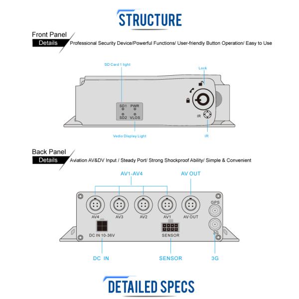 | Moduel | G-Sensor built in, GPS /3G/4G /WIFI (5.8G or 2.4G )Optional |