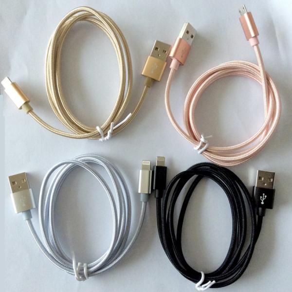 for Android and iPhone | Color | blue/rose gold/gold/silver/black, or customized | Length | 1m, or customized | Usage | charging and data transfer | Compatible | optional connector for Andriod or IOS system | MOQ | 1000 pcs | Packing | polybag (or optional blister, color box, white box and customized