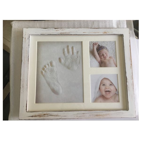 Vintage No Mold Design Handprint Kit Child Baby Photo Frame with Air Dry Clay is different polished from the others in the market, every photo frame will be unique as the polished finish unforseen, which makes it the best gift for the newborn mommy and daddy.