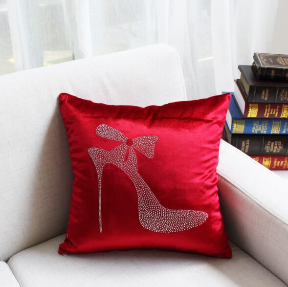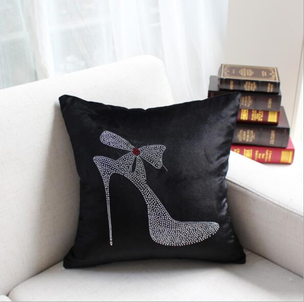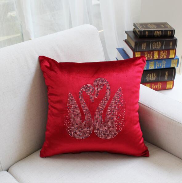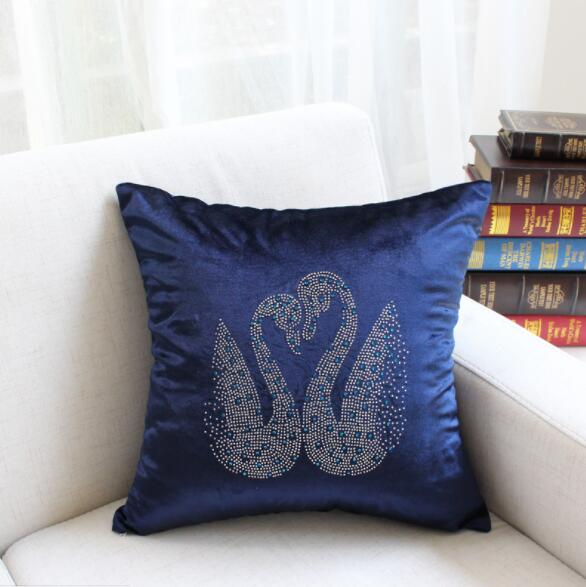 Swan Pattern Cushion Cover Luxury European Diamond Technology Car Seat Chair Pillow Cover Velvet Square Pillowcase