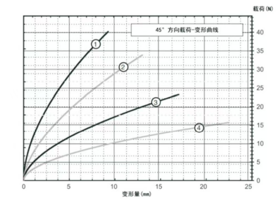 Curve number | Model | Maximum static load(N) | Maximum deformation(mm) | Vibration stiffness(KN/m) | Impact stiffness(KN/m) |