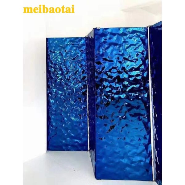 The surface of the ordinary metal corrugated sheet is flat, and the refracted image is also uniform and uniform. But if the metal plate is beaten with a hammer, the surface will become uneven, and the refracted picture can present a visual three-dimensional effect. Through different percussion methods, the metal water ripple sheet can be divided into three categories: large water ripples, small water ripples, and water scale patterns. Water ripple surface treatment methods include bright, brushed, gold, rose gold, black titanium, champagne gold, and sapphire blue.