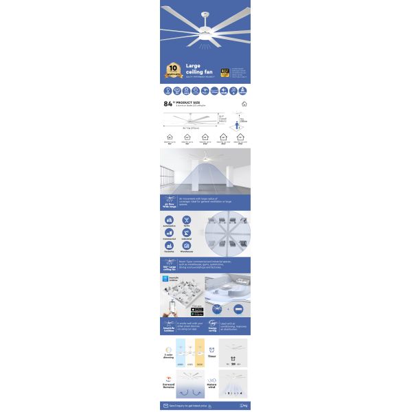 84 Inch Aluminum Metal Blade Ceiling Fan Brushless Inverter Motor