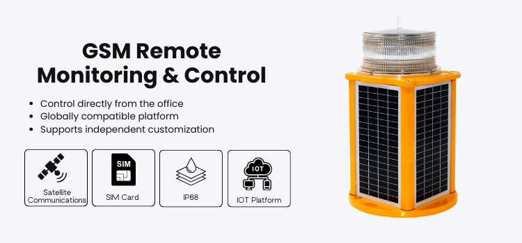 The Solar-Powered Marine GSM Monitoring and Control Light is available in five colors: red, green, yellow, white, and blue.