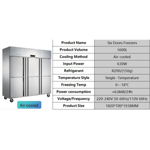 | Model Number: | D1.6L6 Six door single machine single temperature air-cooled refrigeration cabinet |
