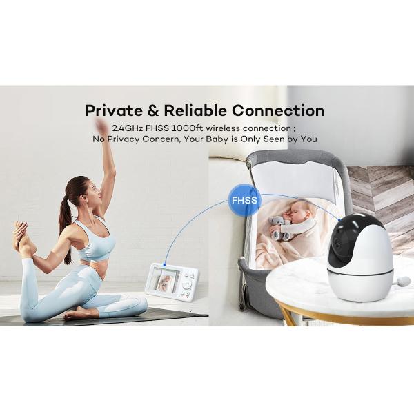 >1. >RF2.4GHz FHSS technology, secure and reliable. No WiFi, no APP; Plug and play, easy to use. Instant faster image no delay compared with WiFi 2.4GHz module baby monitor.