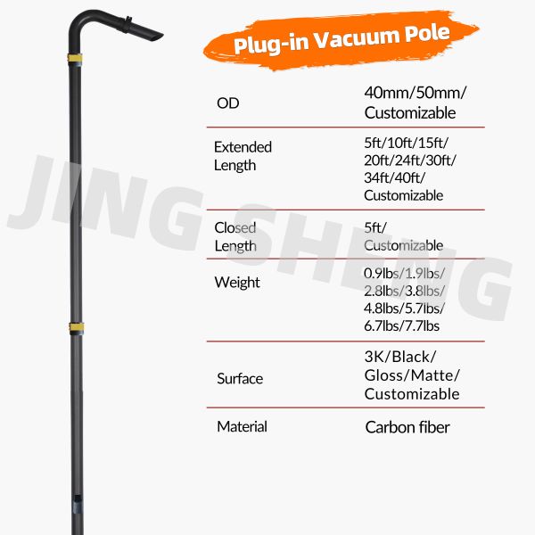Our Carbon Fiber Gutter Vacuum Poles are designed to offer superior performance for both residential and commercial applications. Made from high-quality carbon fiber, these poles combine strength, lightness, and durability, making them the ideal solution for gutter cleaning, industrial piping maintenance, and other challenging tasks.