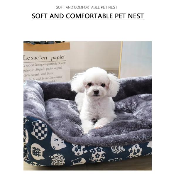 This pet sofa bed is made of a combination of coral fleece and PP cotton, creating a soft and fluffy feel, as light and comfortable as a cloud. It provides warmth and comfort for small animals like dogs and cats, maintaining a comfortable temperature in all seasons, making rest a truly relaxing experience.